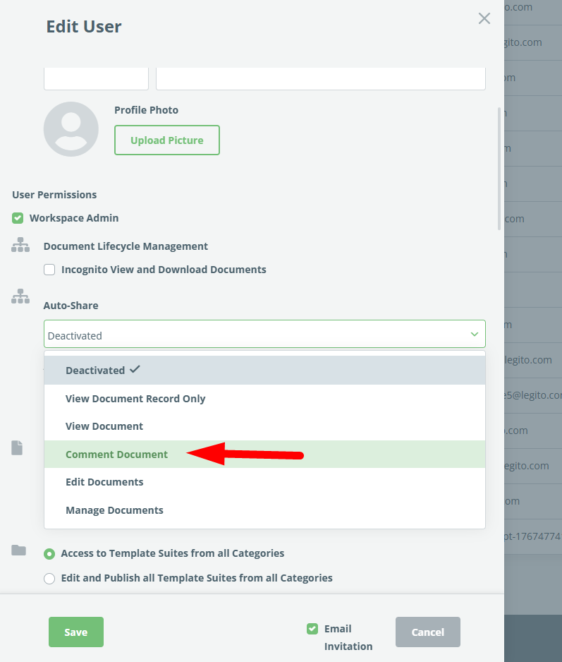 11) New Document Permission – Comment Only