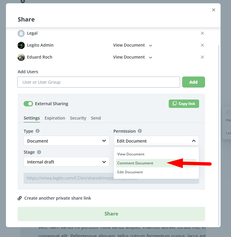 User access to Legito Documents can now be restricted to the following actions only: