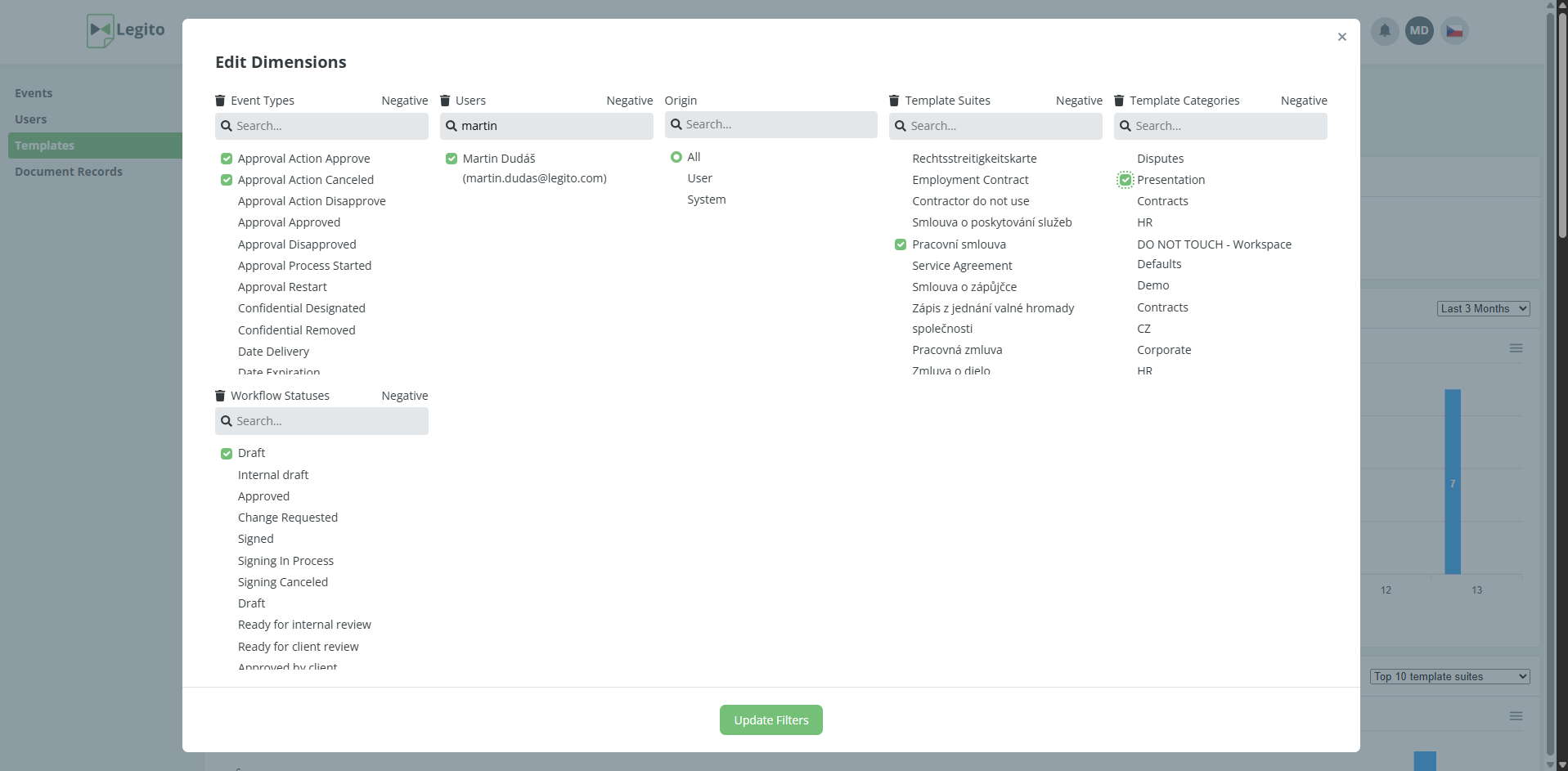A Multiworkspace Management section has been added to Legito. This section will facilitate efficient management of multiple workspaces, in particular, users, workspace settings, or templates. This feature is especially useful for international organizations where each country has its own workspace or holdings of multiple subsidiaries.