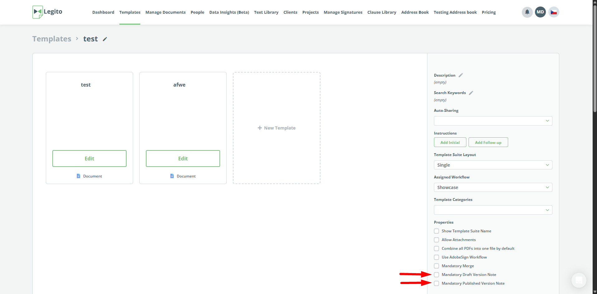 The Template Editor design has been refreshed in several areas and should feel more aligned with the rest of your Legito Workspace. Legito will now respond to your Workspace branding color scheme according to the colors inside Templates. Fields in the Item menu were redesigned and unified.