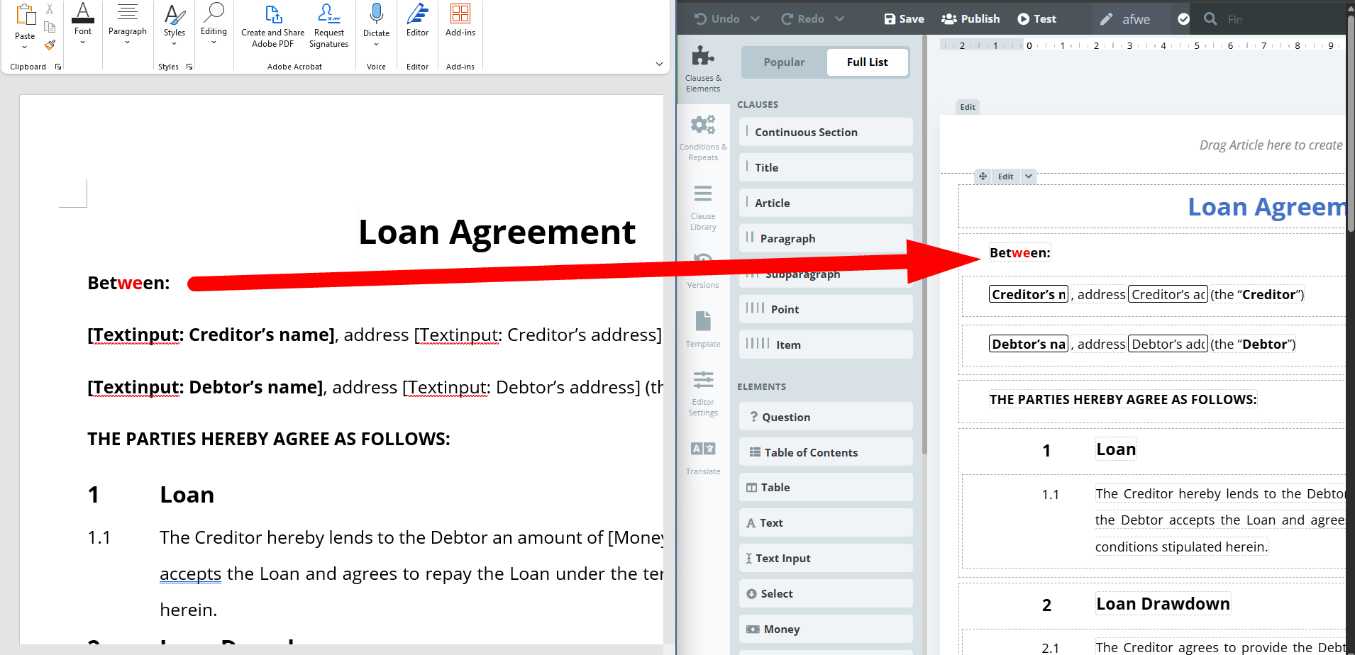 1) AI-powered Conversion of Word docs to Legito Templates