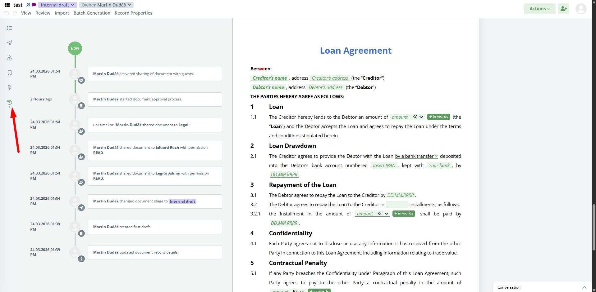 10) Timeline (Audit Trail) in Document Editor