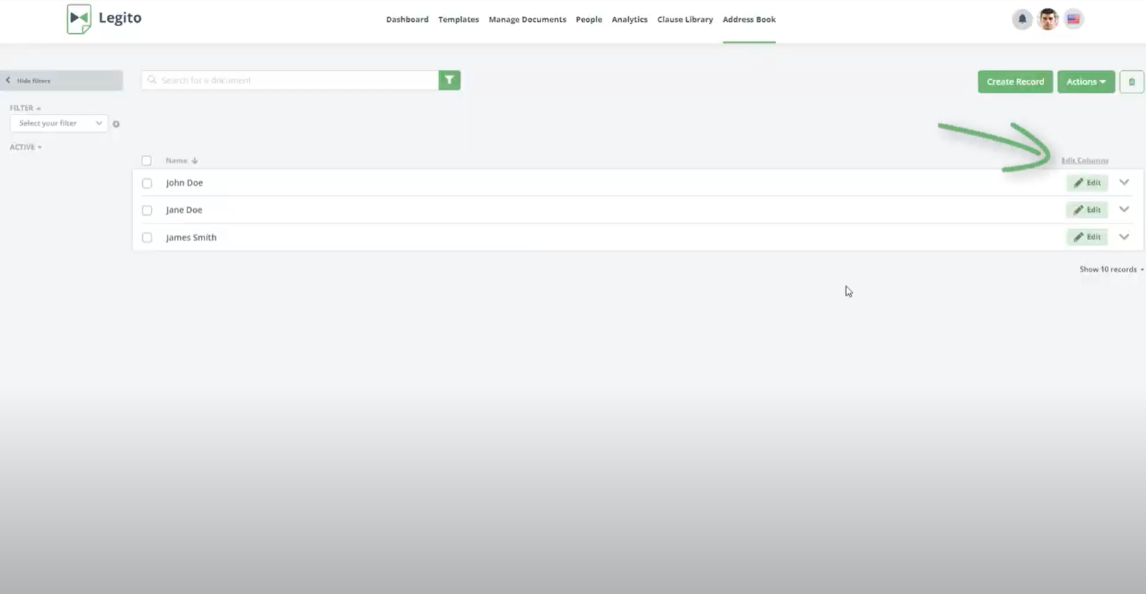 Click on “Edit Columns” in the top right-hand corner above the first record.